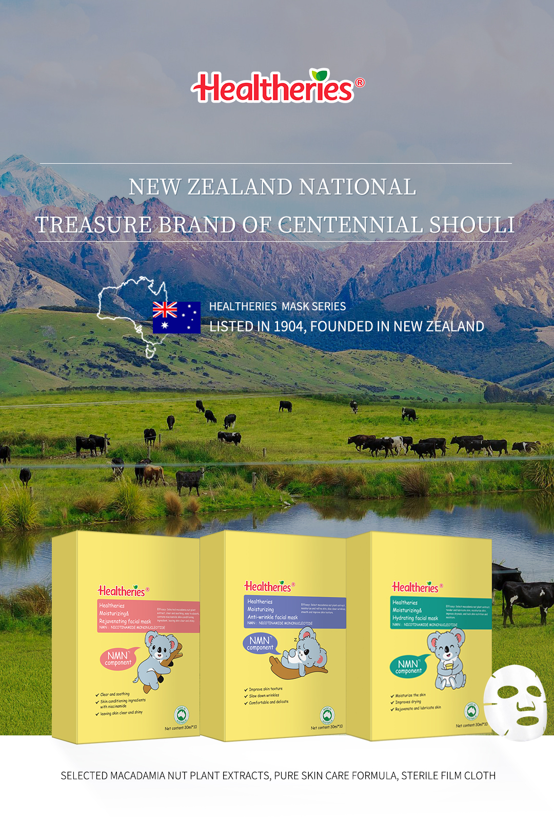贺寿利(英文名:Healtheries)国际知名品牌,1904年成立,源自于号称世界上最后一块净土的新西兰,最早以生产健康食品为主,1979年开始与澳大利亚公司合作,开始生产以儿童为主保健品,2019年与澳大利亚AFI化妆品公司合作,开始进行天然健康的产品进行研发。