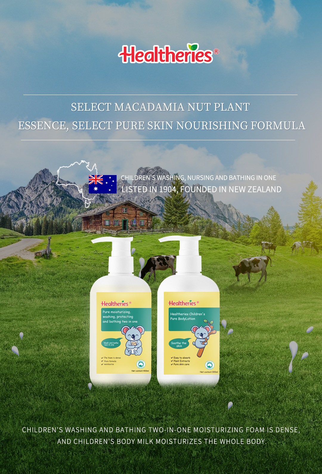 Healtheries含义为健康,澳大利亚、新西兰气候温和,空气纯净无污染,贺寿利将以健康护肤为理念,开创纯净无添加天然有效的科学配方,在自己所熟悉的儿童领域进行研发,开拓婴童市场,将把贺寿利品牌儿童护肤品推向全世界。